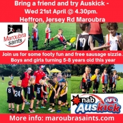 Maroubra Saints encourage you to come along at try AFL.