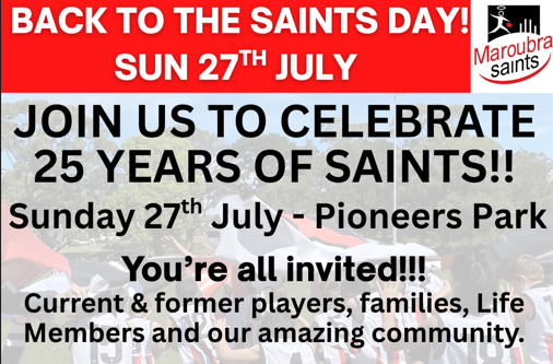 Renee Beck2025-07-10 14:54:102025-07-23 22:23:00Back to the Saints Day – Celebrating 25 Years of the Maroubra Saints!